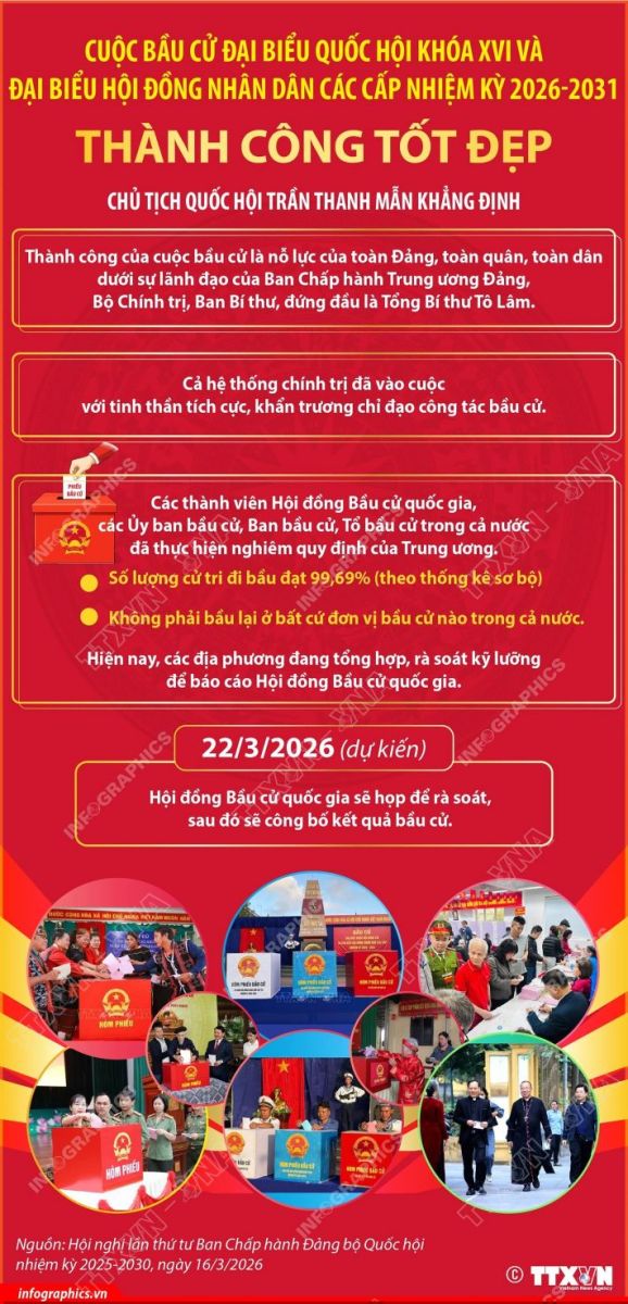 Cuộc bầu cử đại biểu Quốc hội khóa XVI và đại biểu Hội đồng nhân dân các cấp nhiệm kỳ 2026 – 2031 thành công tốt đẹp.