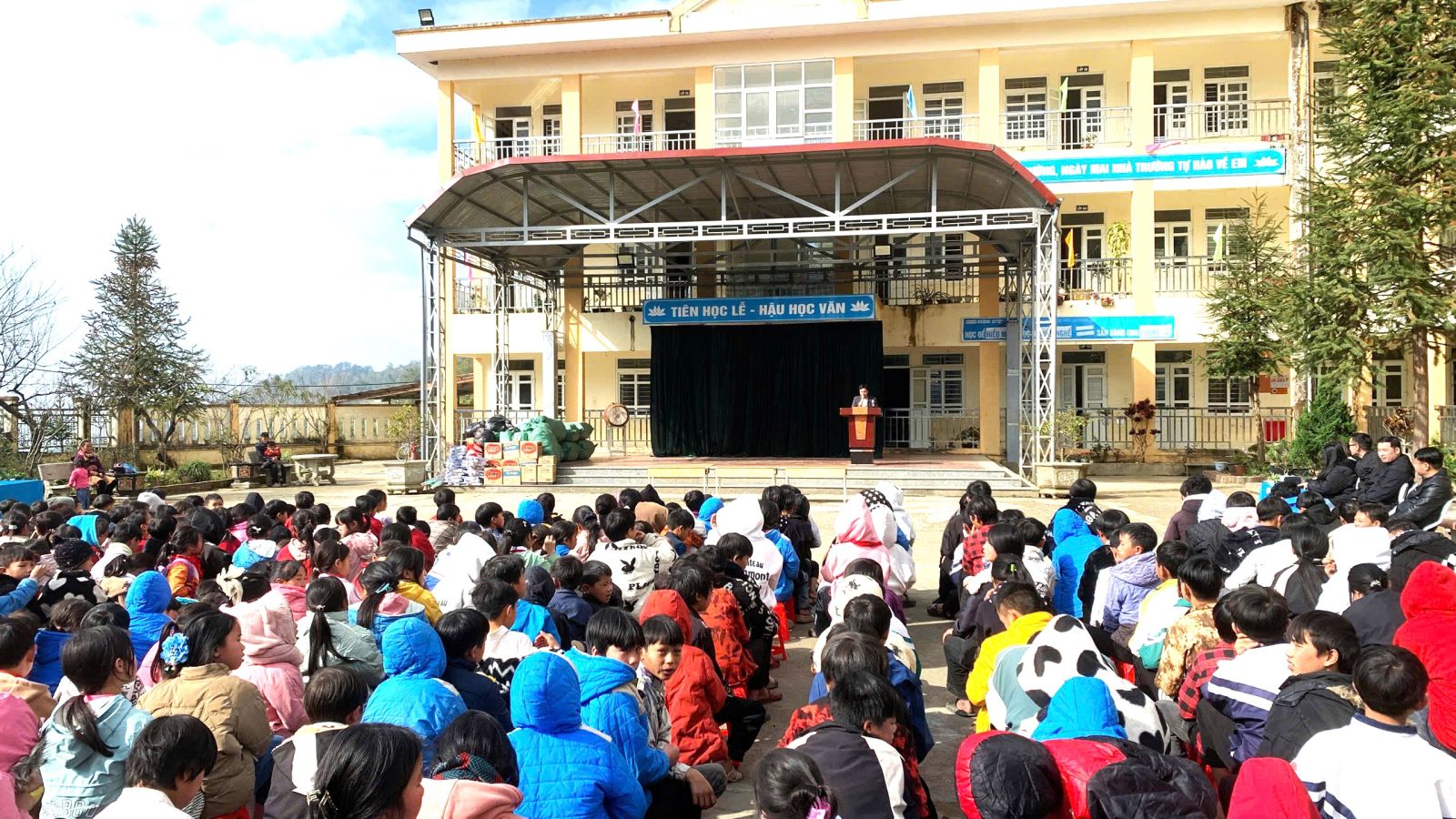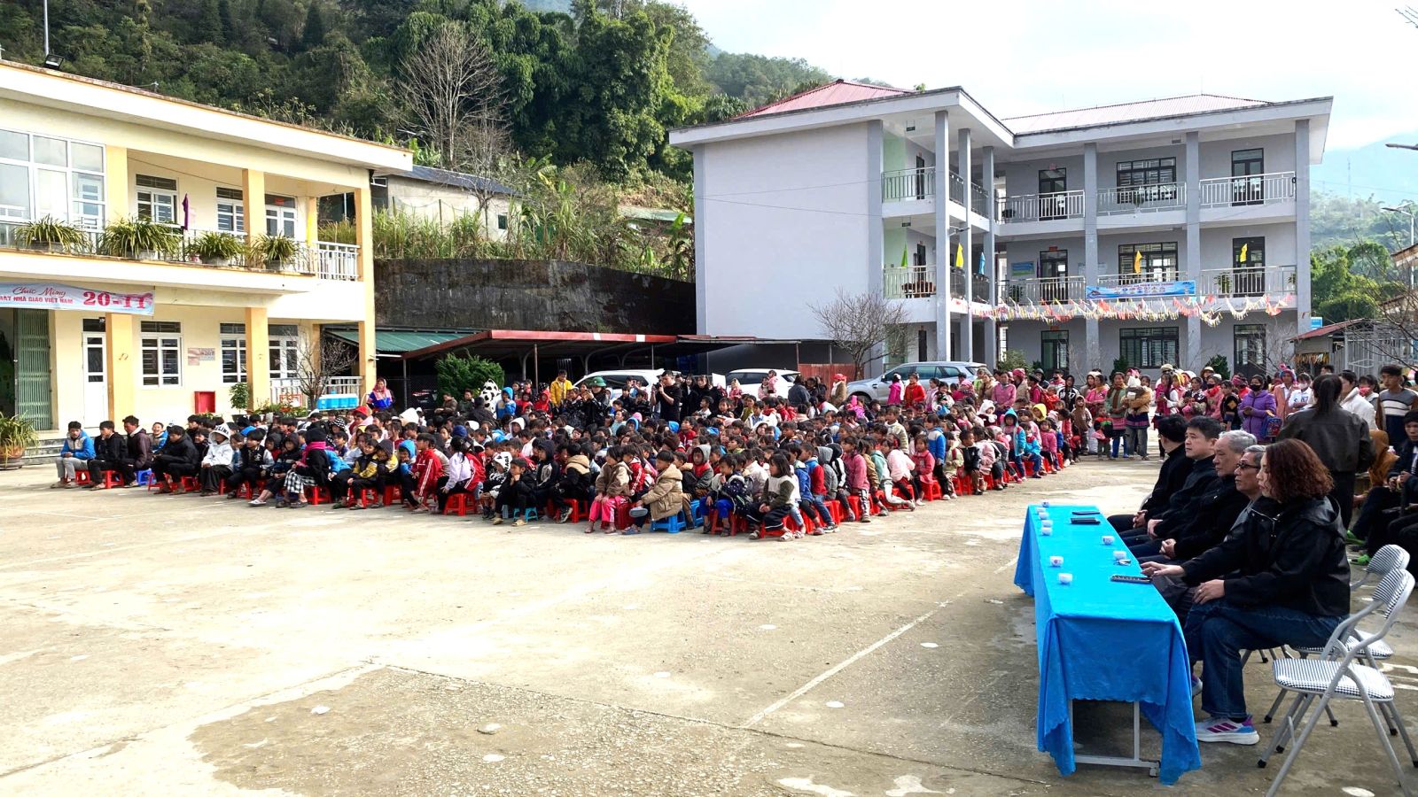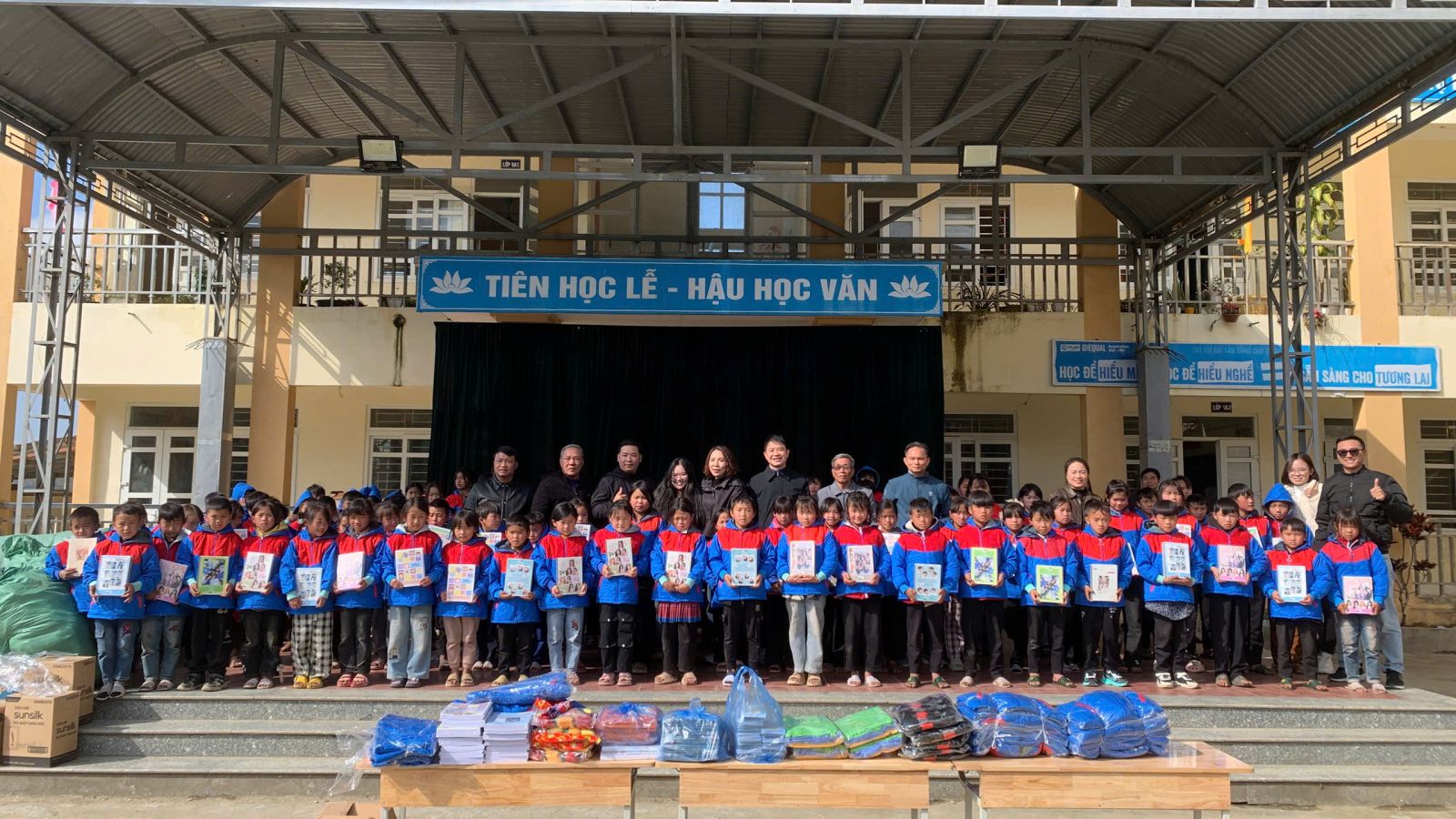 Đoàn Thiện nguyện Kết nối yêu thương – Long Biên - Hà Nội Tặng quà cho các em học sinh Trường Phổ thông Dân tộc bán trú Tiểu học và Trung học cơ sở Pa Vây Sử xã Sì Lở Lầu
