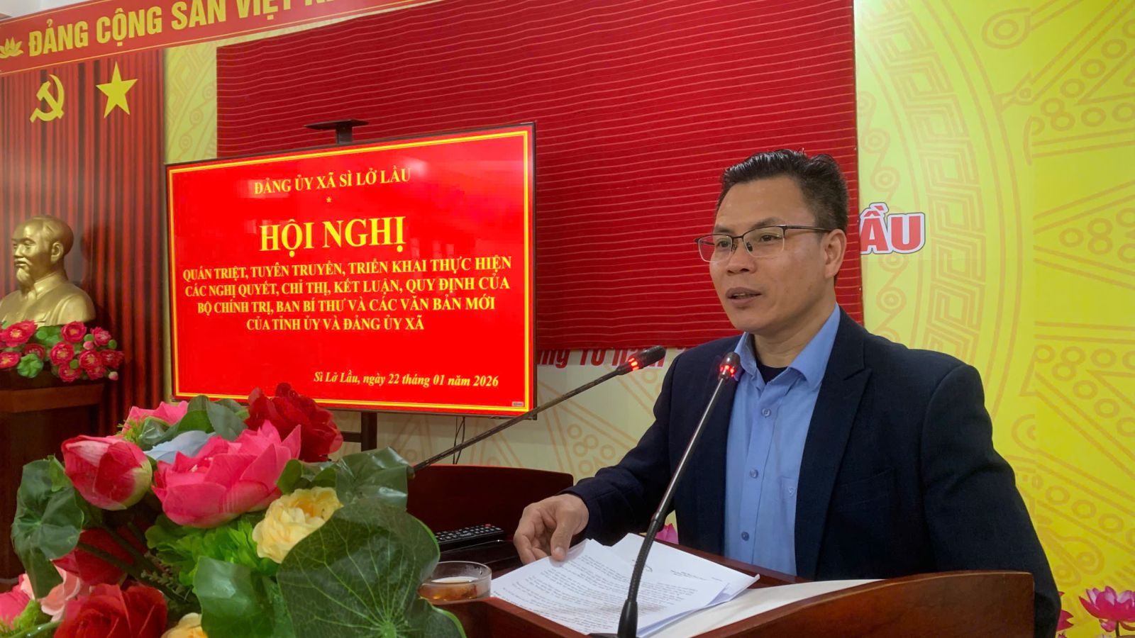 Ngày 22/01/2026, Đảng ủy xã Sì Lở Lầu tổ chức Hội nghị quán triệt các văn bản của Trung ương, Tỉnh ủy và Đảng ủy xã nhằm thống nhất nhận thức, nâng cao trách nhiệm của các cấp, các ngành trong việc triển khai thực hiện hiệu quả các chủ trương, đường lối của Đảng, chính sách, pháp luật của Nhà nước trên địa bàn. Dự và chỉ đạo Hội nghị có đồng chí Trần Bảo Trung – Bí thư Đảng ủy, Chủ tịch HĐND xã; đồng chí Đỗ Xuân Thủy – Phó Bí thư, Chủ tịch UBND xã; Tham dự Hội nghị còn có các đồng chí Thường trực HĐND, lãnh đạo UBND; Ban Thường trực Ủy ban MTTQ Việt Nam xã; đại diện lãnh đạo các ban, ngành, đoàn thể; các đơn vị Trường học, Trạm Y tế xã và các đồng chí Bí thư Chi bộ các bản trên địa bàn.
