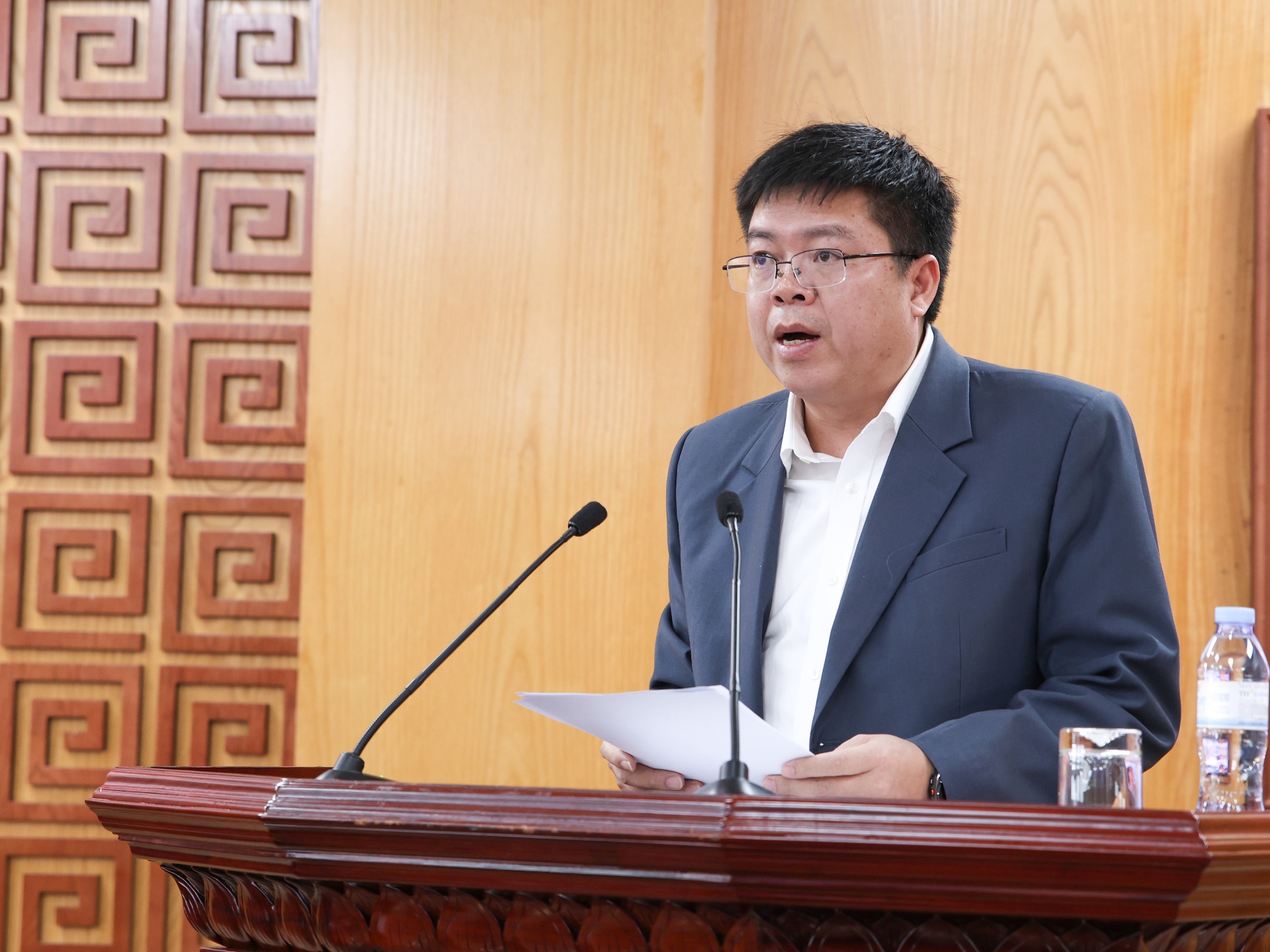 Đồng chí Lò Văn Hương - Tỉnh uỷ viên, Phó Bí thư Đảng uỷ UBND tỉnh phát biểu tham luận tại hội nghị về một số giải pháp nâng cao chất lượng đội ngũ cán bộ, công chức cấp xã.