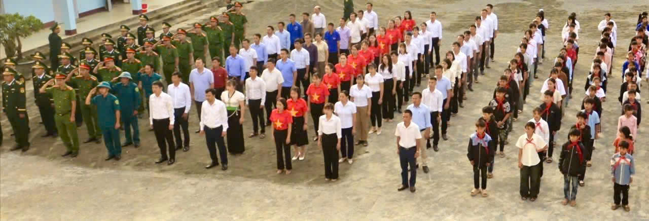 Lễ chào cờ diễn ra trong không khí trang nghiêm, thành kính. Quốc kỳ đỏ thắm tung bay giữa núi rừng biên cương hùng vĩ, hòa trong âm vang hào hùng của Quốc ca, khơi dậy niềm tự hào dân tộc, lòng biết ơn sâu sắc đối với Bác Hồ vĩ đại và các thế hệ cha anh đã hy sinh vì độc lập, tự do của Tổ quốc.