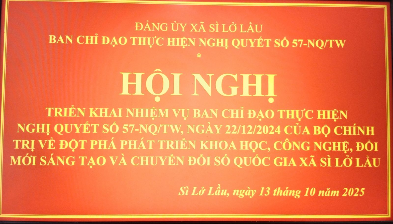 Sáng ngày 13/10/2025, xã Sì Lở Lầu tổ chức Hội nghị triển khai nhiệm vụ Ban Chỉ đạo thực hiện Nghị quyết số 57-NQ/TW, ngày 22/12/2024 của Bộ Chính trị về đột phá phát triển khoa học, công nghệ, đổi mới sáng tạo và chuyển đổi số quốc gia.