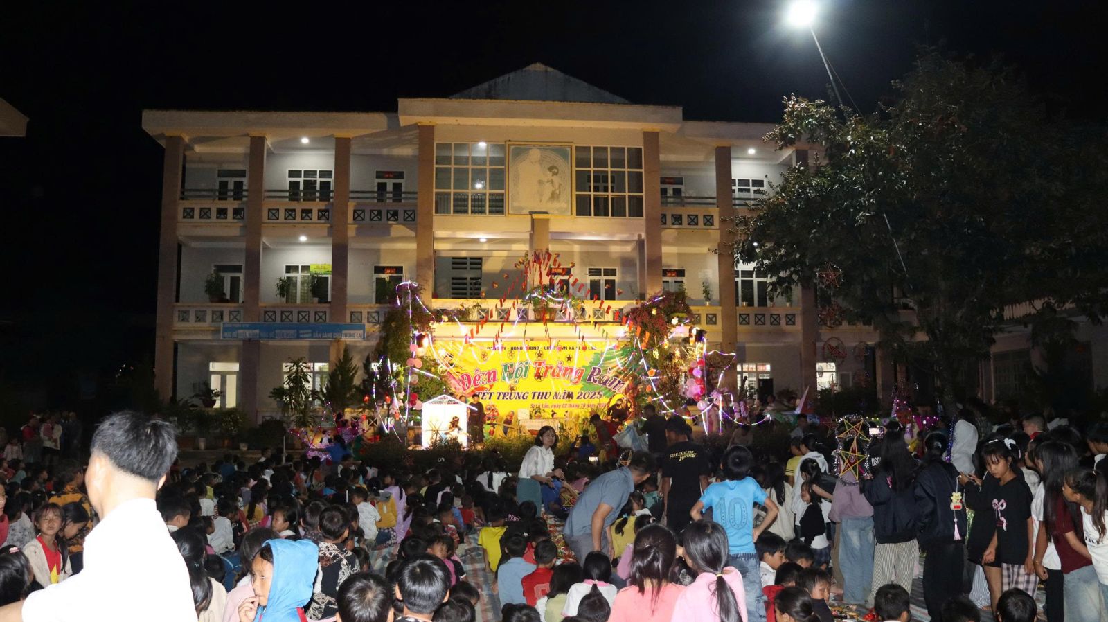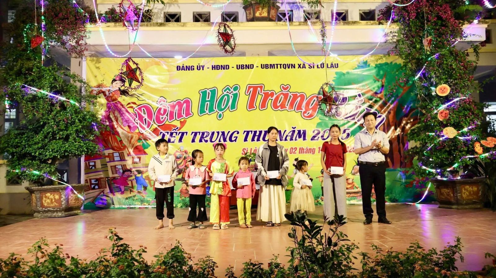 Tối ngày 02/10/2025, tại Trường PTDT BT THCS Vàng Ma Chải, Đảng ủy - HĐND - UBND - UBMTTQ Việt Nam xã Sì Lở Lầu phối hợp với các cơ quan, đơn vị có liên quan đã tổ chức chương trình “Đêm hội Trăng rằm” cho các em học sinh liên trường: Mầm non, PTDT Bán trú Tiểu học và PTDT Bán trú THCS Vàng Ma Chải.