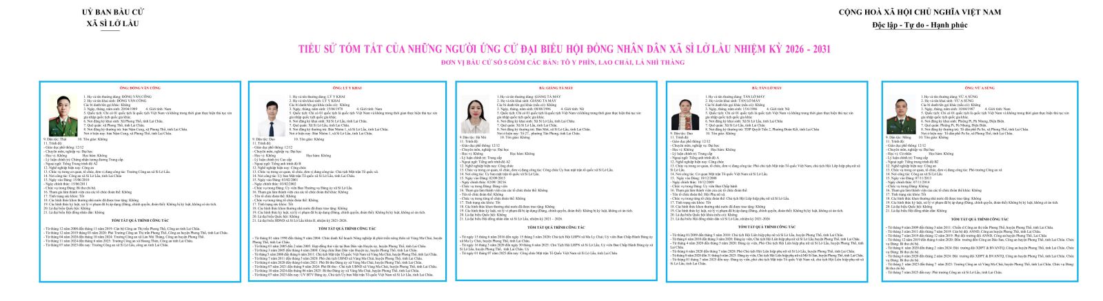 TIỂU SỬ TÓM TẮT CỦA NHỮNG NGƯỜI ỨNG CỬ ĐẠI BIỂU HỘI ĐỒNG NHÂN DÂN XÃ SÌ LỞ LẦU NHIỆM KỲ 2026 - 2031 ĐƠN VỊ BẦU CỬ SỐ 5 GỒM CÁC BẢN: TÔ Y PHÌN, LAO CHẢI, LẢ NHÌ THÀNG