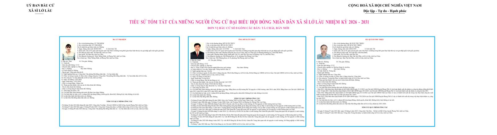 TIỂU SỬ TÓM TẮT CỦA NHỮNG NGƯỜI ỨNG CỬ ĐẠI BIỂU HỘI ĐỒNG NHÂN DÂN XÃ SÌ LỞ LẦU NHIỆM KỲ 2026 - 2031 ĐƠN VỊ BẦU CỬ SỐ 8 GỒM CÁC BẢN: TẢ CHẢI, BẢN MỚI