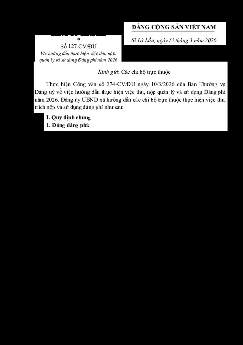| Số hiệu | Số 127-CV/ĐU | Cơ quan ban hành | ĐẢNG ỦY XÃ SÌ LỞ LẦU ĐẢNG UỶ UBND XÃ |
